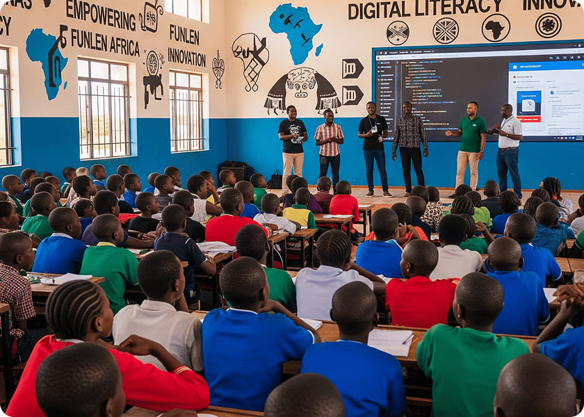 At Funlen Africa, we believe the future belongs to everyone, regardless of where they are born. While we deliver high-impact, future-ready tech education to schools across Africa, we are equally committed to bridging the digital divide in underserved communities.